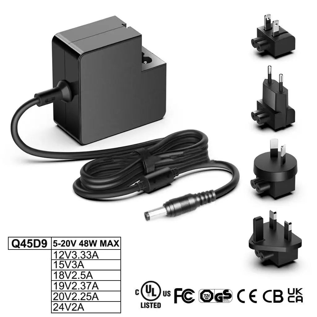 12 V / 3,33 A, 15 V / 3 A, 18 V / 2,5 A, 19 V / 2,37 A, 19 V / 2,53 A, 20 V / 2,25 A, 24 V / 2 A |