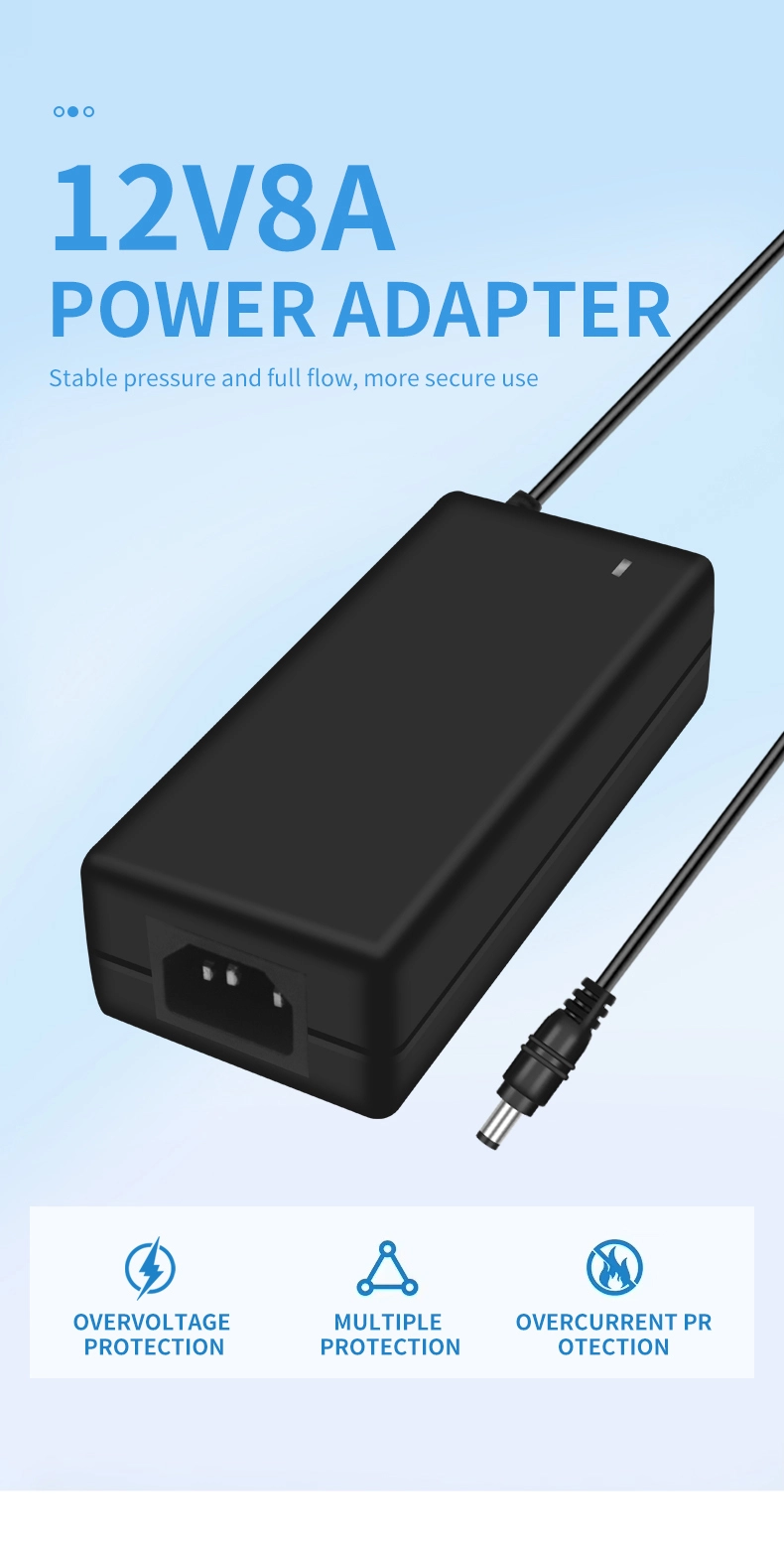 Esant 96W vardinei galiai, 96W maitinimo adapterio išėjimo srovė stabilizuojasi ties 8A piko lygiu, o įtampos tikslumas valdomas ±5% ribose (įtampa tuščiąja eiga: 12,1V; pilnos apkrovos įtampa: 11,8V). Jis gali patenkinti kelių įrenginių (pvz., 2 lygiagrečių 48 W įrenginių) vienu metu maitinimo poreikius. Gryno vario šerdies išvesties kabelis užtikrina ≤0,3 V įtampos kritimą, išlaikant neslopintą veikimą perduodant didelę srovę.