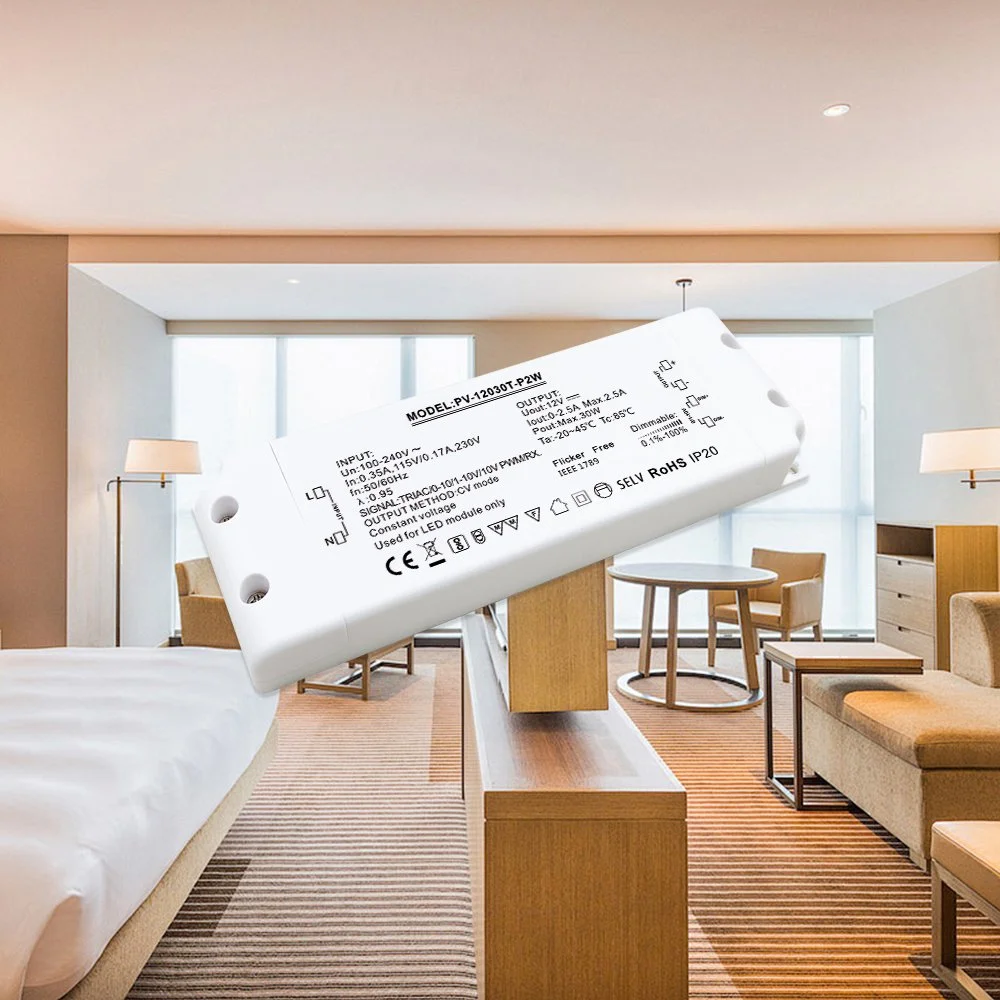 Kaip stabili pastovios įtampos maitinimo šaltinio Triac pritemdymo LED tvarkyklė, užtikrinanti nuolatinę 12 V nuolatinės srovės įtampą. Šis 12 V 30 W triacinis pritemdomas maitinimo šaltinis turi aukštos kokybės komponentus ir pažangų grandinės dizainą, užtikrina stabilią išėjimo įtampą visame pritemdymo diapazone ir iš esmės pašalina šviesų mirgėjimą. Tai tikrai nemirganti triac pritemdanti LED tvarkyklė, skirta naudoti patalpose. Jo nemirksinti funkcija ne tik sukuria patogią ir sveiką vizualinę aplinką, bet ir efektyviai apsaugo jautrius LED šviesos šaltinius ir modulius, prailgindama bendrą šviestuvų tarnavimo laiką.