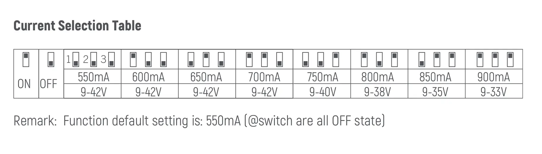 Vieno kanalo 180mA/240mA/300mA |