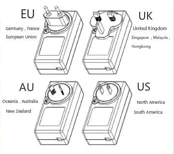 Kintamosios srovės kištuko tipas | JAV / ES / JK / AS ar daugiau | |