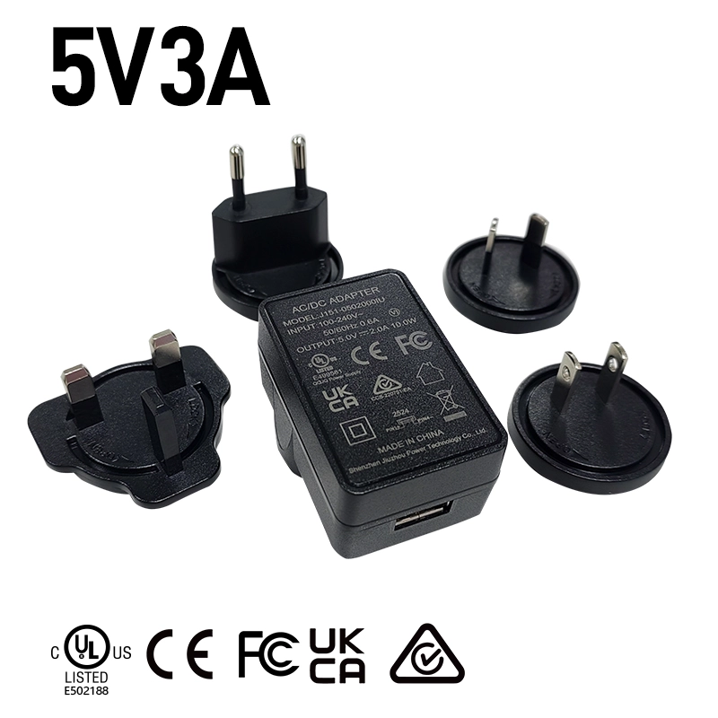 5V 3A keičiamas kištukas USB įkroviklis |