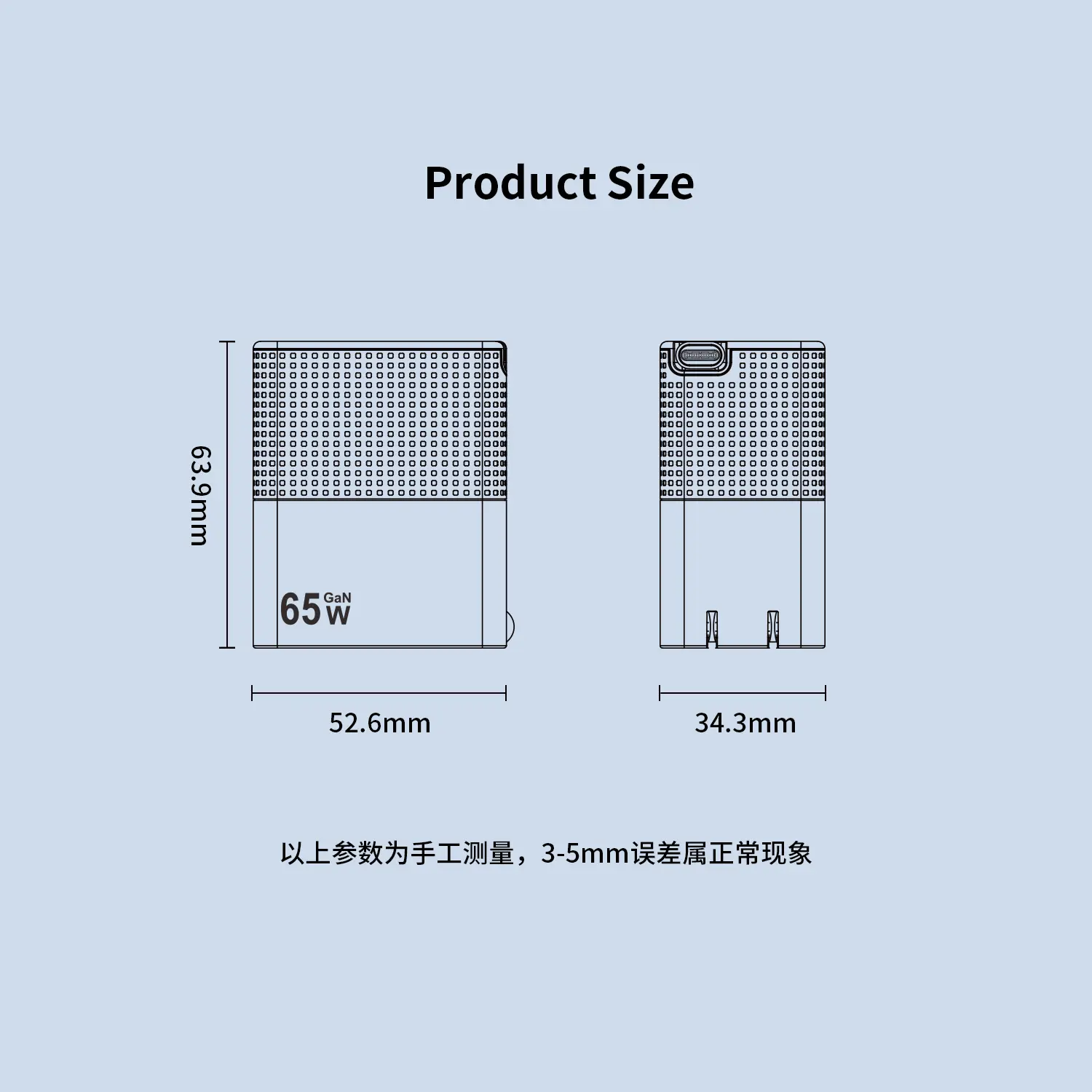 65 W didelės spartos energijos tiekimas: užtikrina greitą nešiojamųjų kompiuterių, planšetinių kompiuterių ir išmaniųjų telefonų įkrovimą naudojant pažangią PD 3.0 technologiją, įkraunant „MacBook Pro“ iki 50 % vos per 45 minutes.