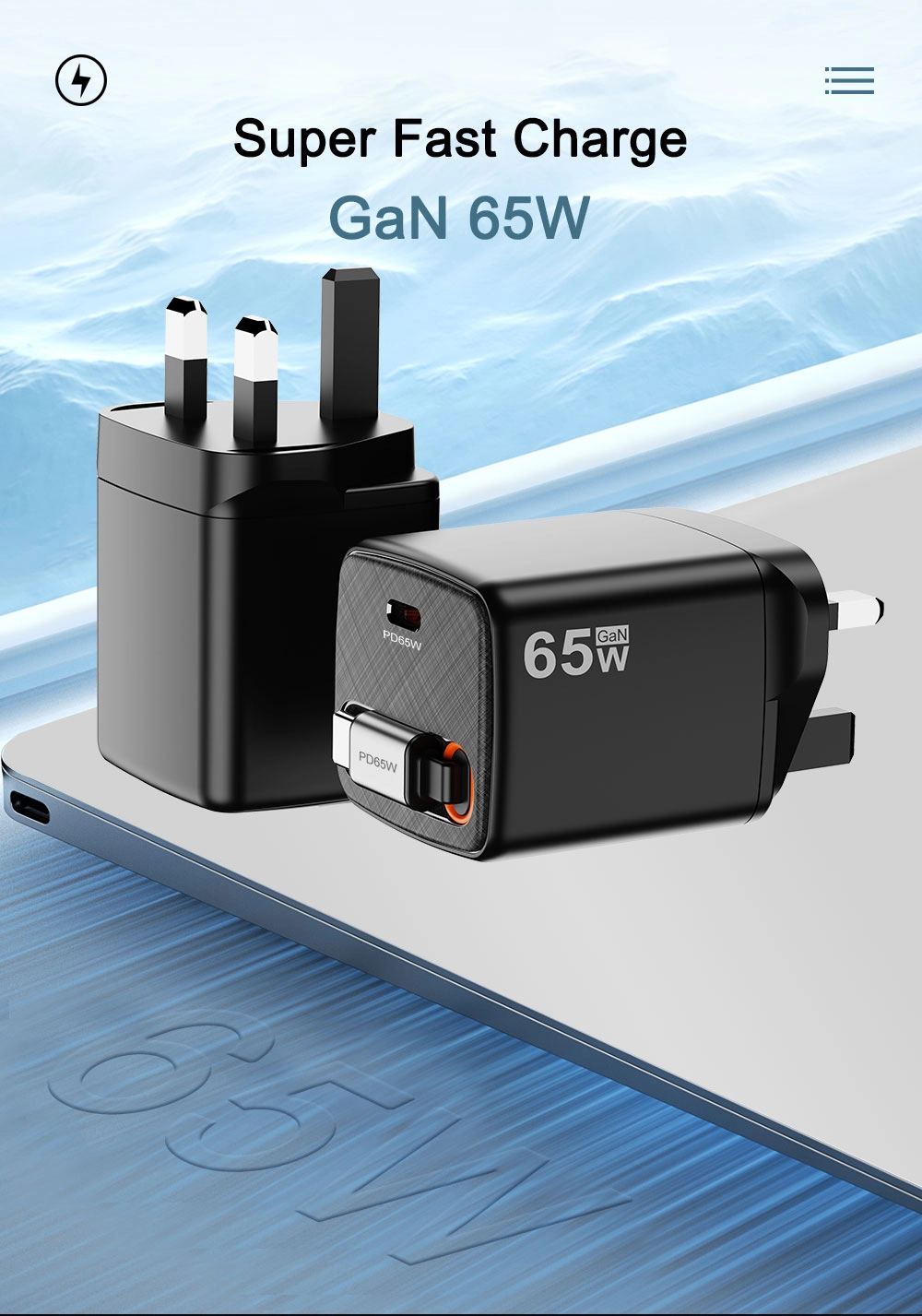 STARWELL, patikimas Kinijos gamintojas, tiekia šį aukštos kokybės, prieinamą JK kištuko tipo 65 W greitąjį įkroviklį.
