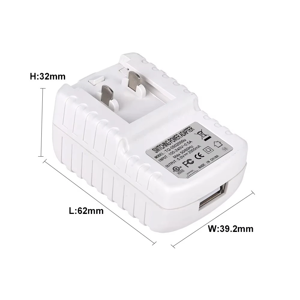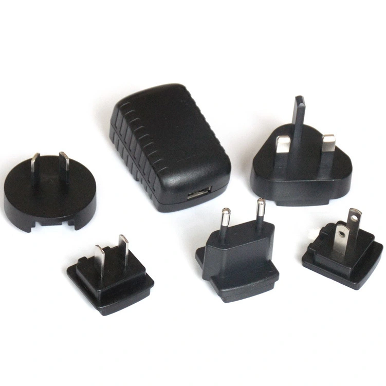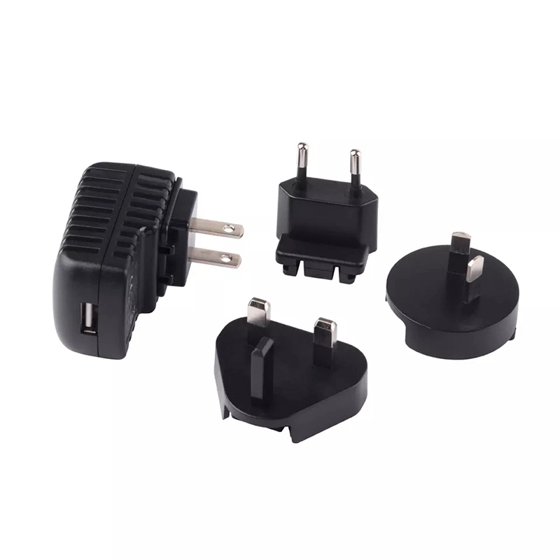 5V 2A universalus USB A prievado įkroviklio maitinimo adapteris su keičiamu kintamosios srovės kištuku |